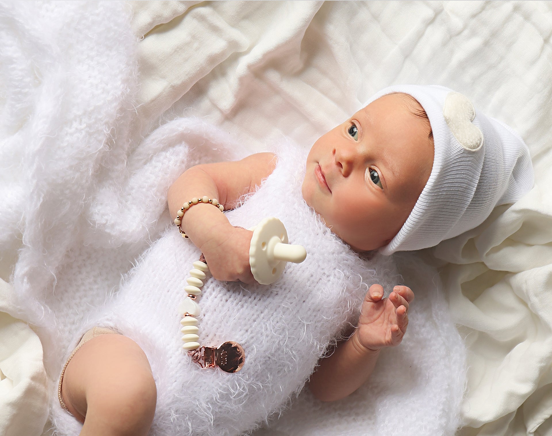 Each of our delicate pacifier clips is tailored to your baby: short and light enough to accessorize without discomfort or choking risks. Our custom-made beads are washable and food-grade material for playing, teething, and growing.